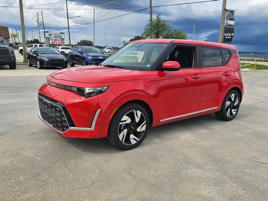 Never get into a cold vehicle again with the remote start feature on the vehicle. The leather seats in this unit are a must for buyers looking for comfort, durability, and style. This 2025 Kia Soul offers Android Auto for seamless smartphone integration. See what's behind you with the back up camera on the vehicle. This small suv keeps you comfortable with Auto Climate. This unit offers Apple CarPlay for seamless connectivity. The installed navigation system will keep you on the right path. This vehicle features a hands-free Bluetooth phone system. It utilizes collision avoidance to enhance safety by automatically detecting and evading potential accidents. This small suv excites both driver and bystanders with a polished red exterior with racy lines. Maintaining a stable interior temperature in this vehicle is easy with the climate control system. The vehicle has a 4 Cyl, 2.0L high output engine. This small suv is front wheel drive.