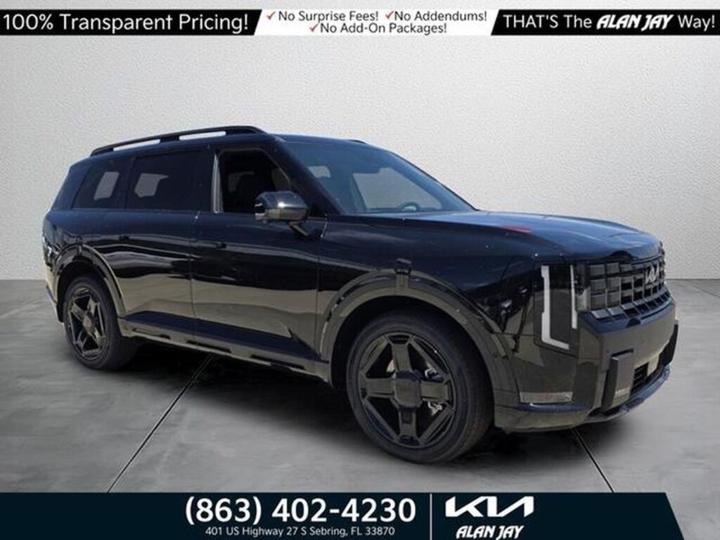 2027 Kia Telluride X-Line SX 4WD â" located in Sebring, FL â" delivers refined capability, premium comfort, and advanced technology at the best price. Powered by a responsive 2.5L 4-cylinder gasoline engine paired with intelligent 4WD, this Kia Telluride X-Line SX balances efficiency and confident traction for Florida roads and weekend escapes. The rugged X-Line trim adds distinctive styling and enhanced ground clearance while maintaining the Kia Telluride's spacious three-row cabin, seating family and cargo with ease. Inside, premium materials and thoughtful features elevate every drive. Stay connected with Android Auto and Hands-Free Bluetooth for seamless smartphone integration and safe calling. Start the engine from a distance with Remote Start to precondition the interior on warm Sebring mornings. A Back-Up Camera aids parking and maneuvering in tight spots, while the Heated Steering Wheel adds comfort during cooler evenings or long drives. Safety, convenience, and capability are carefully integrated into the Kia Telluride's design, making it an ideal choice for families and active lifestyles seeking value without compromise. Enjoy confident handling from the 4WD system and the practical efficiency of a modern 2.5L engine. Visit our Sebring, FL location to see this 2027 Kia Telluride X-Line SX and take advantage of the best price available today.